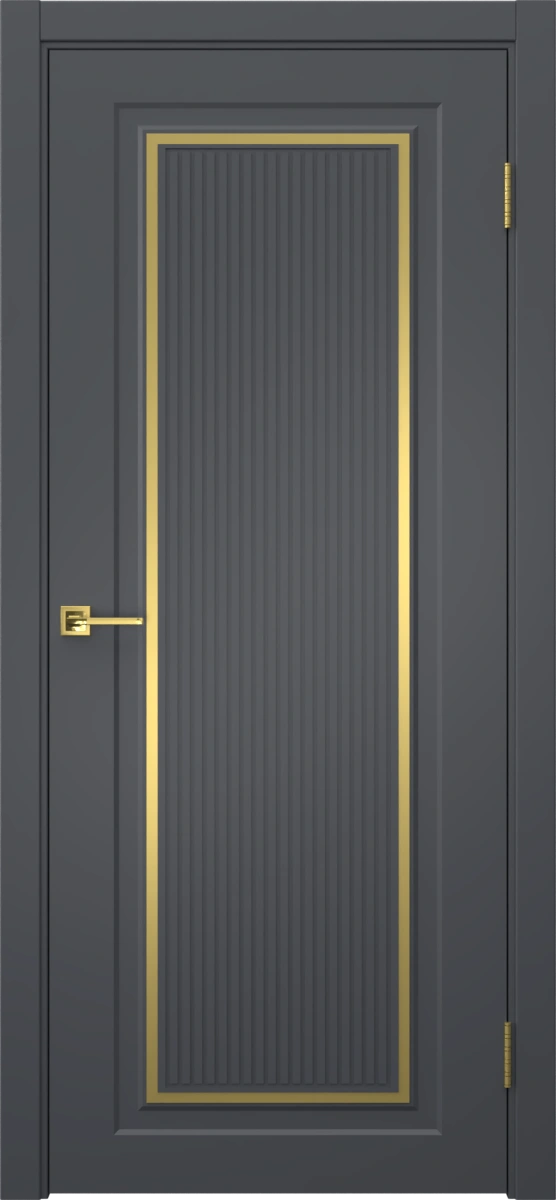 Межкомнатная фрезерованная каркасная дверь, покрытая эмалью цвета RAL 7012 (базальтово-серый), глухая. Изготовлена из срощенного соснового бруса, МДФ и сотового наполнителя. Толщина полотна: 38 мм. Дверная коробка с телескопическим наличником входит в комплект. Производятся под заказ двери нестандартных размеров.