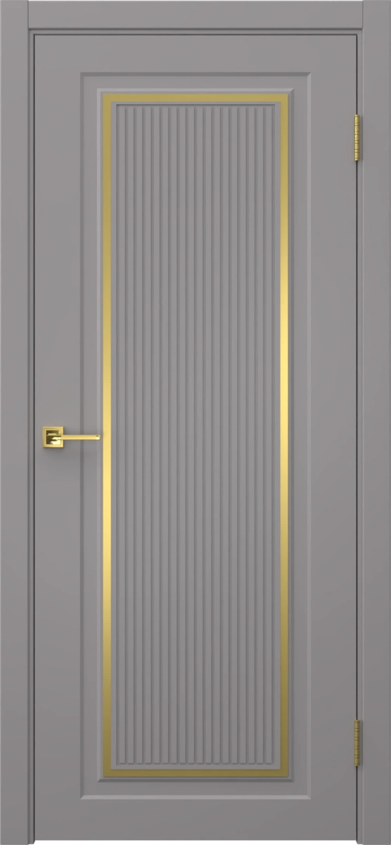 Межкомнатная фрезерованная каркасная дверь, покрытая эмалью в цвете RAL 7036 (платиново-серый), глухая. Полотно изготовлено из срощенного соснового бруса, сотового наполнителя и МДФ. Толщина: 38 мм. В комплект входит дверная коробка с телескопическим наличником. Под заказ производятся двери нестандартных габаритов.