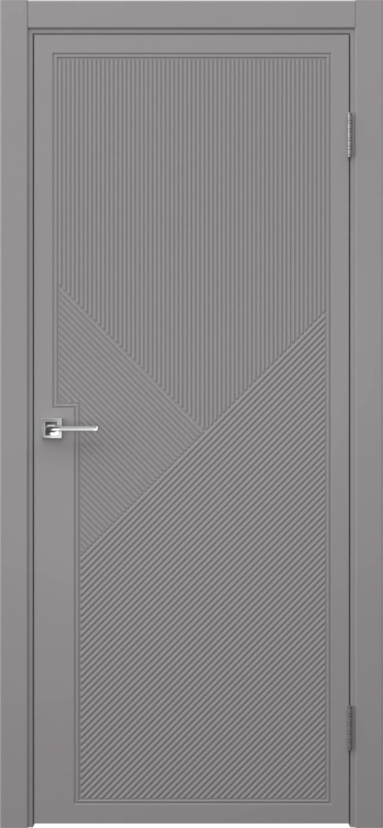 Межкомнатная фрезерованная современная каркасная дверь, покрытая эмалью в цвете RAL 7036 (платиново-серый), глухая. Полотно изготовлено из срощенного соснового бруса, сотового наполнителя и МДФ. Толщина: 38 мм. Комплектуется дверной коробкой с телескопическим наличником. Возможно изготовление дверей нестандартных размеров.