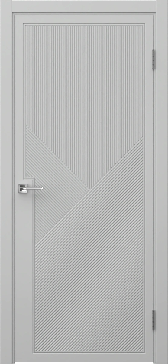 Межкомнатная фрезерованная современная каркасная дверь, покрытая эмалью цвета RAL 7047 (телегрей 4), глухая. Изготовлена из срощенного бруса сосны, МДФ и сотового наполнителя. Толщина полотна: 38 мм. Комплектуется дверной коробкой с телескопическим наличником. Изготавливаются под заказ двери нестандартных размеров.