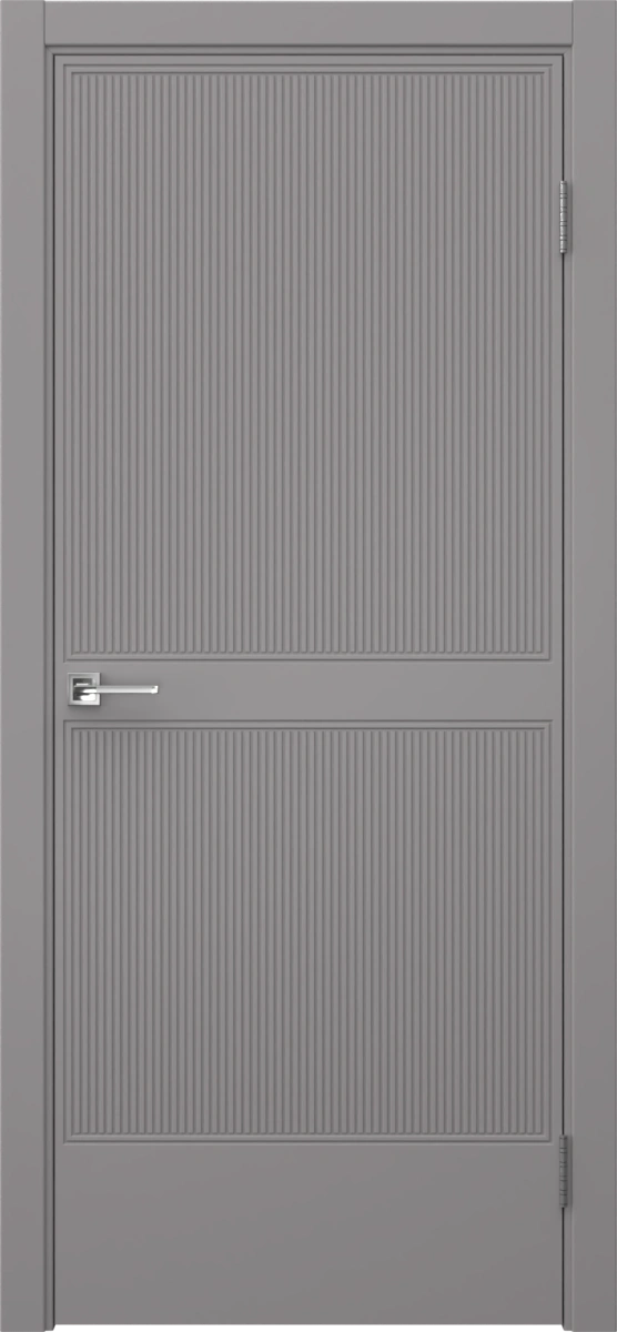 Межкомнатная фрезерованная современная каркасная дверь, покрытая эмалью в цвете RAL 7036 (платиново-серый), глухая. Изготовлена из срощенного соснового бруса, МДФ и сотового наполнителя. Толщина полотна: 38 мм. Комплектуется дверной коробкой с телескопическим наличником. Изготавливаются под заказ двери нестандартных размеров.