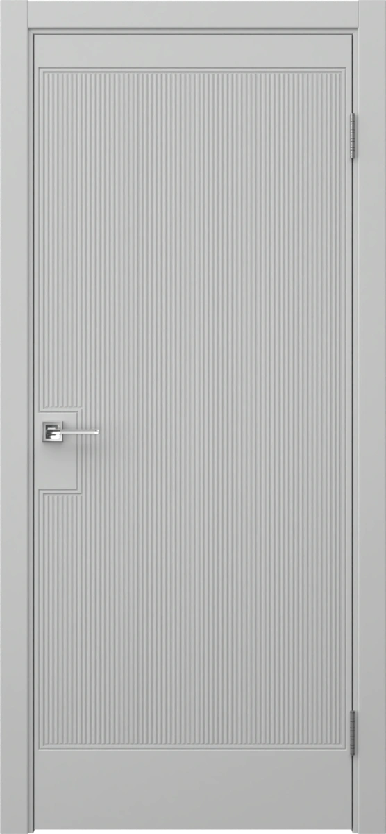 Межкомнатная фрезерованная современная каркасная дверь, покрытая эмалью цвета RAL 7047 (телегрей 4), глухая. Полотно изготовлено из срощенного соснового бруса, сотового наполнителя и МДФ. Толщина: 38 мм. Комплектуется дверной коробкой с телескопическим наличником. Под заказ производятся двери нестандартных габаритов.