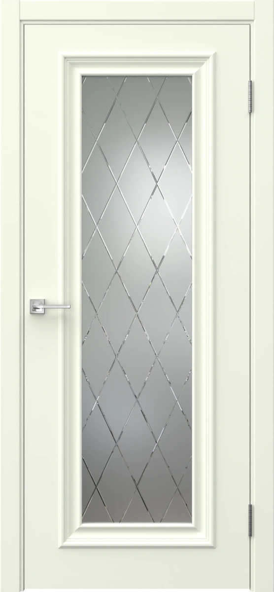 Межкомнатная классическая каркасная дверь, покрытая эмалью белого цвета (RAL 9010), с матовым стеклом (сатинат) с гравировкой. Изготовлена из срощенного соснового бруса, МДФ и сотового наполнителя. Толщина полотна: 38 мм. Дверная коробка с телескопическим наличником входит в комплект. Под заказ производятся двери нестандартных габаритов.