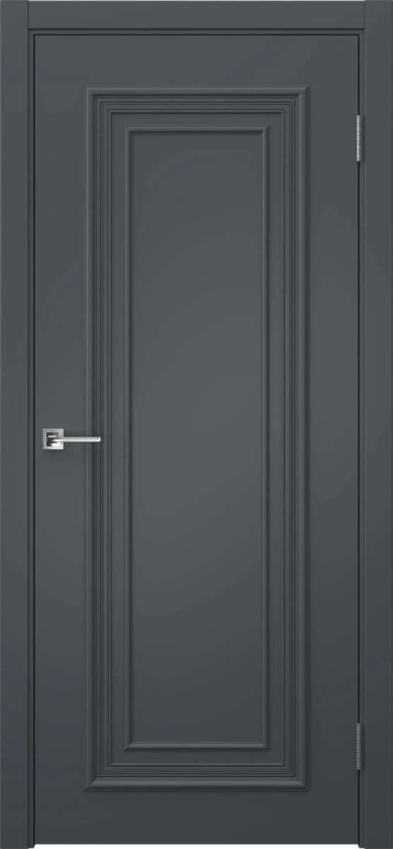Межкомнатная классическая каркасная дверь, покрытая эмалью цвета RAL 7012 (базальтово-серый), глухая. Изготовлена из срощенного бруса сосны, МДФ и сотового наполнителя. Толщина полотна: 38 мм. В комплект входит дверная коробка с телескопическим наличником. Производятся под заказ двери нестандартных размеров.