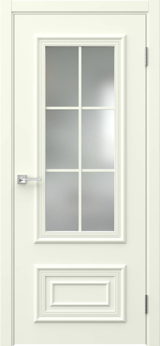 Межкомнатная классическая каркасная дверь, покрытая эмалью белого цвета (RAL 9010), стекло — сатинат с решеткой. Изготовлена из срощенного бруса сосны, МДФ и сотового наполнителя. Толщина полотна: 38 мм. В комплект входит дверная коробка с телескопическим наличником. Изготавливаются под заказ двери нестандартных размеров.