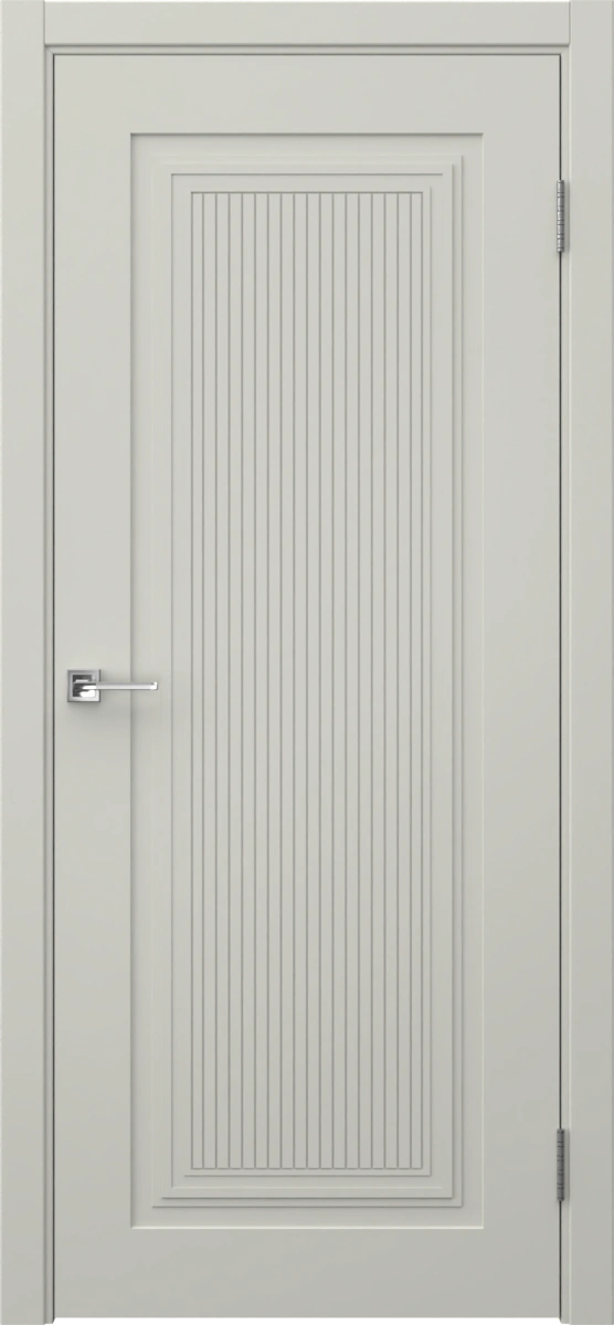Межкомнатная фрезерованная каркасная дверь, покрытая эмалью цвета RAL 7044 (серый шелк), глухая. Полотно изготовлено из срощенного соснового бруса, сотового наполнителя и МДФ. Толщина: 38 мм. Комплектация включает в себя дверную коробку с телескопическим наличником. Изготавливаются под заказ двери нестандартных размеров.