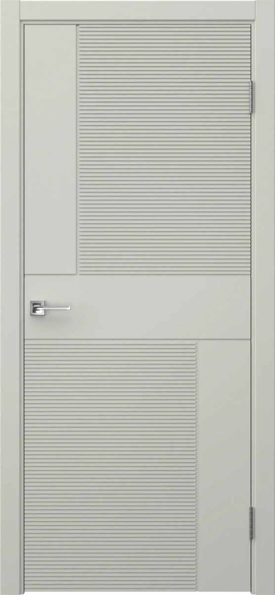 Межкомнатная фрезерованная современная каркасная дверь, покрытая эмалью цвета RAL 7044 (серый шелк), глухая. Полотно изготовлено из срощенного бруса сосны, МДФ и сотового наполнителя. Толщина: 38 мм. В комплект входит дверная коробка с телескопическим наличником. Возможно изготовление дверей нестандартных размеров.