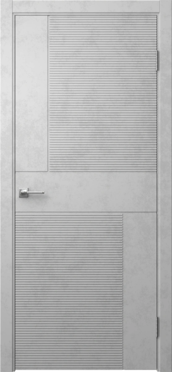 Межкомнатная фрезерованная современная каркасная дверь, покрытая экошпоном цвета «бетон светлый», глухая. Полотно изготовлено из срощенного соснового бруса, сотового наполнителя и МДФ. Толщина: 38 мм. Дверная коробка с телескопическим наличником входит в комплект. Изготавливаются под заказ двери нестандартных размеров.