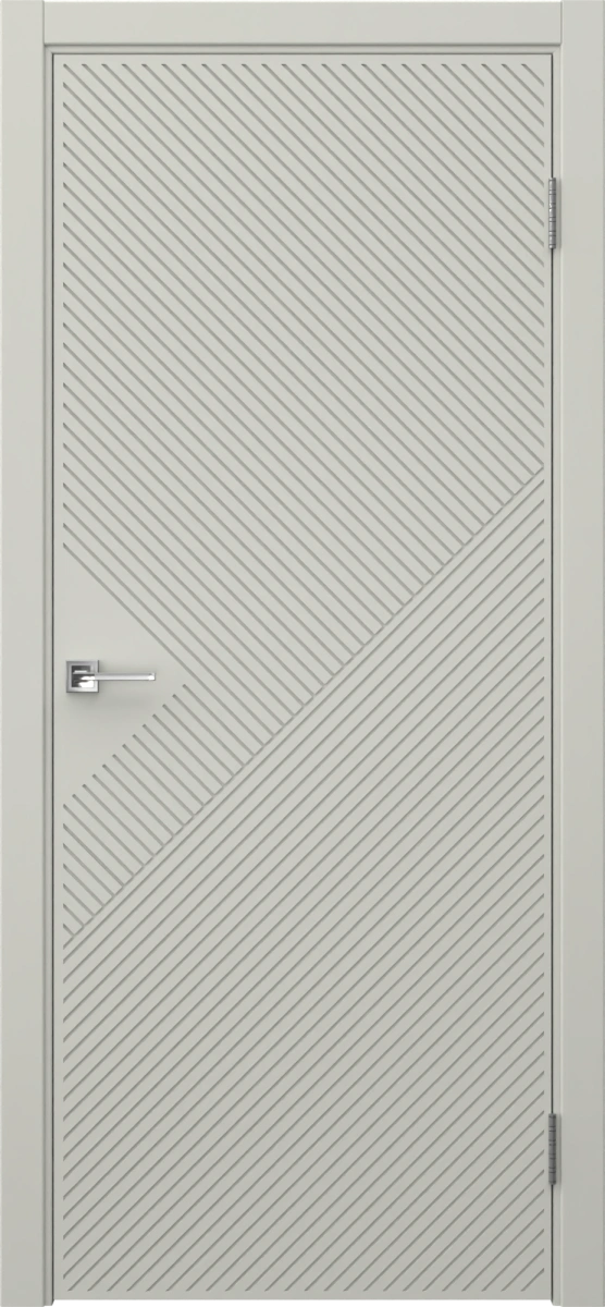 Межкомнатная фрезерованная современная каркасная дверь, покрытая эмалью в цвете RAL 7044 (серый шелк), глухая. Полотно изготовлено из срощенного соснового бруса, сотового наполнителя и МДФ. Толщина: 38 мм. Дверная коробка с телескопическим наличником входит в комплект. Под заказ производятся двери нестандартных габаритов.