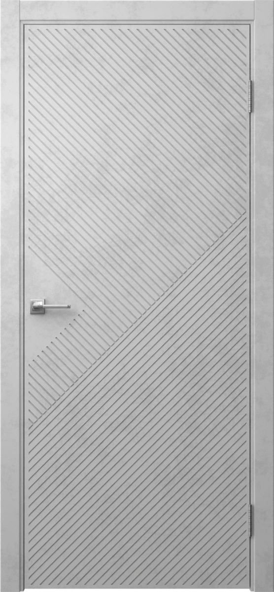 Межкомнатная фрезерованная современная каркасная дверь, покрытая экошпоном цвета «бетон светлый», глухая. Полотно изготовлено из срощенного бруса сосны, МДФ и сотового наполнителя. Толщина: 38 мм. Дверная коробка с телескопическим наличником входит в комплект. Под заказ производятся двери нестандартных габаритов.
