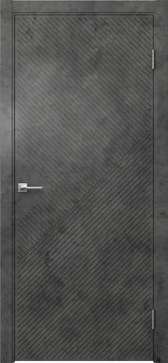 Межкомнатная фрезерованная современная каркасная дверь, покрытая экошпоном в цвете «бетон темный», глухая. Изготовлена из срощенного соснового бруса, МДФ и сотового наполнителя. Толщина полотна: 38 мм. Дверная коробка с телескопическим наличником входит в комплект. Под заказ производятся двери нестандартных габаритов.