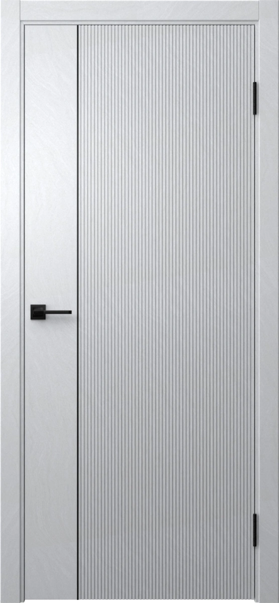 Межкомнатная фрезерованная современная каркасная дверь, покрытая экошпоном в цвете «дюна норд», глухая, с черным пластиковым молдингом. Полотно изготовлено из срощенного бруса сосны, МДФ и сотового наполнителя. Толщина: 38 мм. Комплектация включает в себя дверную коробку с телескопическим наличником. Изготавливаются под заказ двери нестандартных размеров.