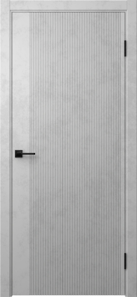 Межкомнатная фрезерованная современная каркасная дверь, покрытая экошпоном цвета «бетон светлый», глухая. Полотно изготовлено из срощенного бруса сосны, МДФ и сотового наполнителя. Толщина: 38 мм. Дверная коробка с телескопическим наличником входит в комплект. Изготавливаются под заказ двери нестандартных размеров.