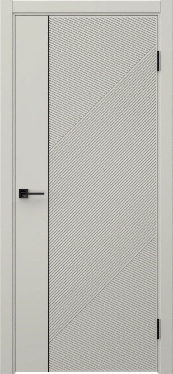 Межкомнатная фрезерованная современная каркасная дверь, покрытая эмалью цвета RAL 7044 (серый шелк), глухая, с черным пластиковым молдингом. Полотно изготовлено из срощенного бруса сосны, МДФ и сотового наполнителя. Толщина: 38 мм. В комплект входит дверная коробка с телескопическим наличником. Под заказ производятся двери нестандартных габаритов.