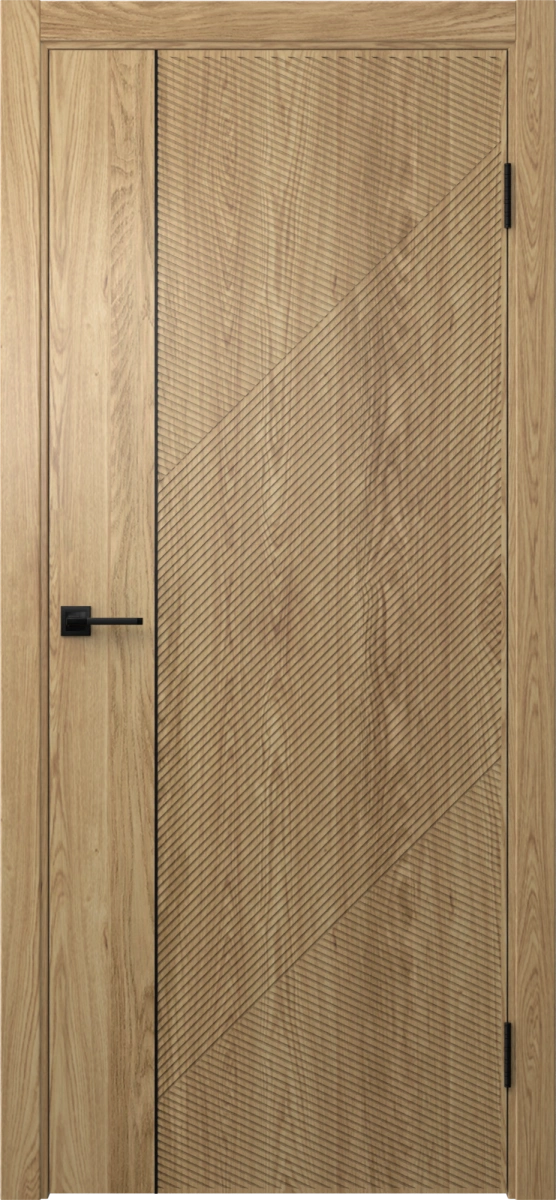 Межкомнатная фрезерованная современная каркасная дверь, покрытая экошпоном в цвете «дуб европейский соломенный», глухая, с черным пластиковым молдингом. Полотно изготовлено из срощенного бруса сосны, МДФ и сотового наполнителя. Толщина: 38 мм. Комплектация включает в себя дверную коробку с телескопическим наличником. Изготавливаются под заказ двери нестандартных размеров.