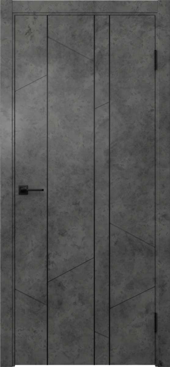 Межкомнатная фрезерованная современная каркасная дверь, покрытая экошпоном в цвете «бетон темный», глухая, с черным пластиковым молдингом. Полотно изготовлено из срощенного соснового бруса, сотового наполнителя и МДФ. Толщина: 38 мм. В комплект входит дверная коробка с телескопическим наличником. Под заказ производятся двери нестандартных габаритов.
