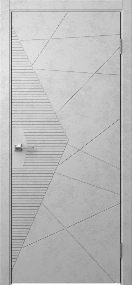 Межкомнатная фрезерованная современная каркасная дверь, покрытая экошпоном цвета «бетон светлый», глухая. Изготовлена из срощенного бруса сосны, МДФ и сотового наполнителя. Толщина полотна: 38 мм. Комплектуется дверной коробкой с телескопическим наличником. Возможно изготовление дверей нестандартных размеров.