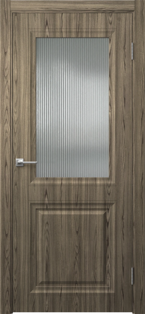 Межкомнатная классическая царговая дверь, покрытая экошпоном в цвете «эсперальба юпитер», с матовым рифленым стеклом. Полотно изготовлено из срощенного соснового бруса, сотового наполнителя и МДФ. Толщина: 38 мм. Дверная коробка с телескопическим наличником входит в комплект. Возможно изготовление дверей нестандартных размеров.