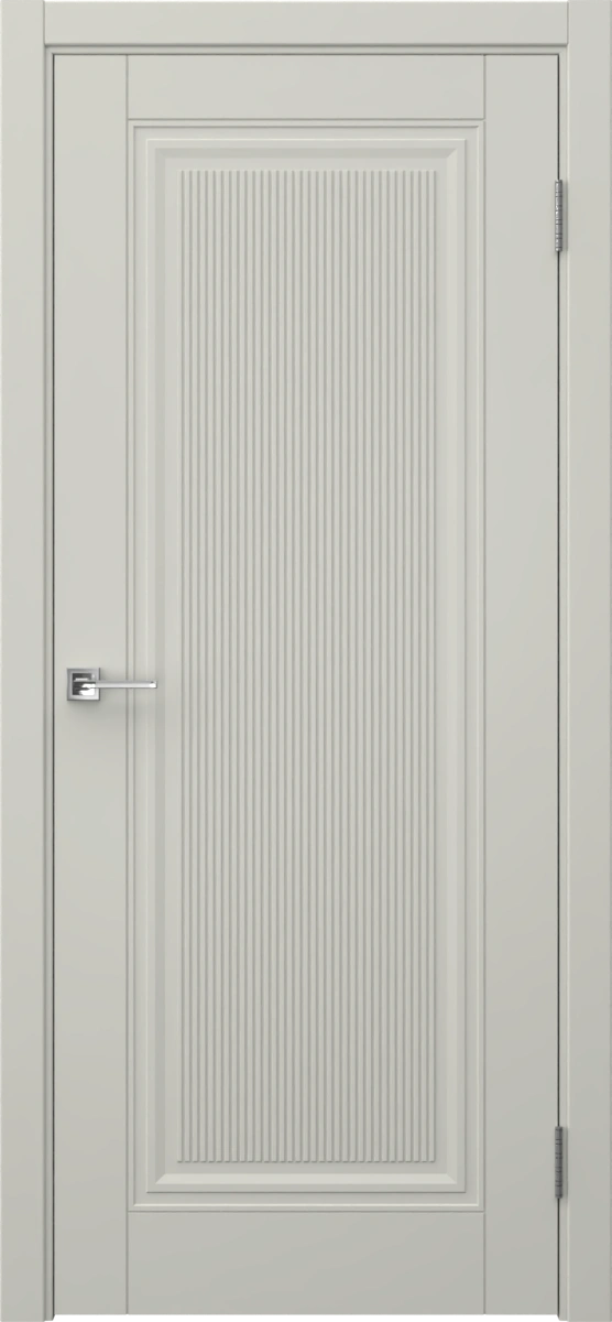 Межкомнатная фрезерованная каркасная дверь, покрытая эмалью в цвете RAL 7044 (серый шелк), глухая. Полотно изготовлено из срощенного соснового бруса, сотового наполнителя и МДФ. Толщина: 38 мм. Дверная коробка с телескопическим наличником входит в комплект. Под заказ производятся двери нестандартных габаритов.