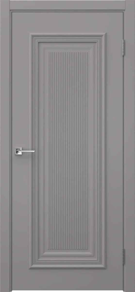 Межкомнатная фрезерованная каркасная дверь с багетом, покрытая эмалью в цвете RAL 7036 (платиново-серый), глухая. Изготовлена из срощенного соснового бруса, МДФ и сотового наполнителя. Толщина полотна: 38 мм. Комплектуется дверной коробкой с телескопическим наличником. Изготавливаются под заказ двери нестандартных размеров.
