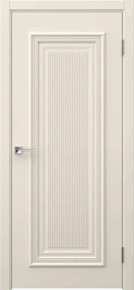 Межкомнатная фрезерованная каркасная дверь с багетом, покрытая эмалью цвета RAL 9001 (кремово-белый), глухая. Изготовлена из срощенного соснового бруса, МДФ и сотового наполнителя. Толщина полотна: 38 мм. Дверная коробка с телескопическим наличником входит в комплект. Под заказ производятся двери нестандартных габаритов.