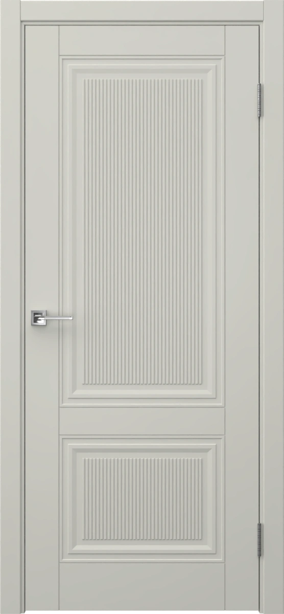 Межкомнатная фрезерованная каркасная дверь, покрытая эмалью цвета RAL 7044 (серый шелк), глухая. Изготовлена из срощенного бруса сосны, МДФ и сотового наполнителя. Толщина полотна: 38 мм. Комплектуется дверной коробкой с телескопическим наличником. Под заказ производятся двери нестандартных габаритов.