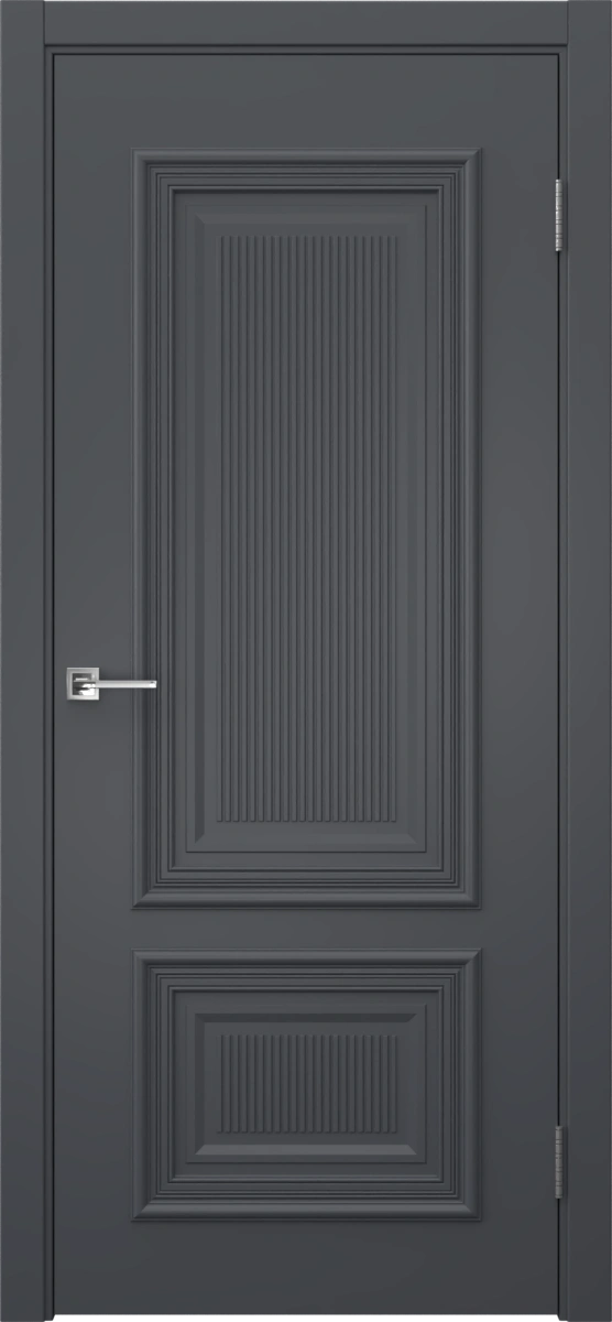Межкомнатная фрезерованная каркасная дверь с багетом, покрытая эмалью цвета RAL 7012 (базальтово-серый), глухая. Изготовлена из срощенного соснового бруса, МДФ и сотового наполнителя. Толщина полотна: 38 мм. В комплект входит дверная коробка с телескопическим наличником. Под заказ производятся двери нестандартных габаритов.