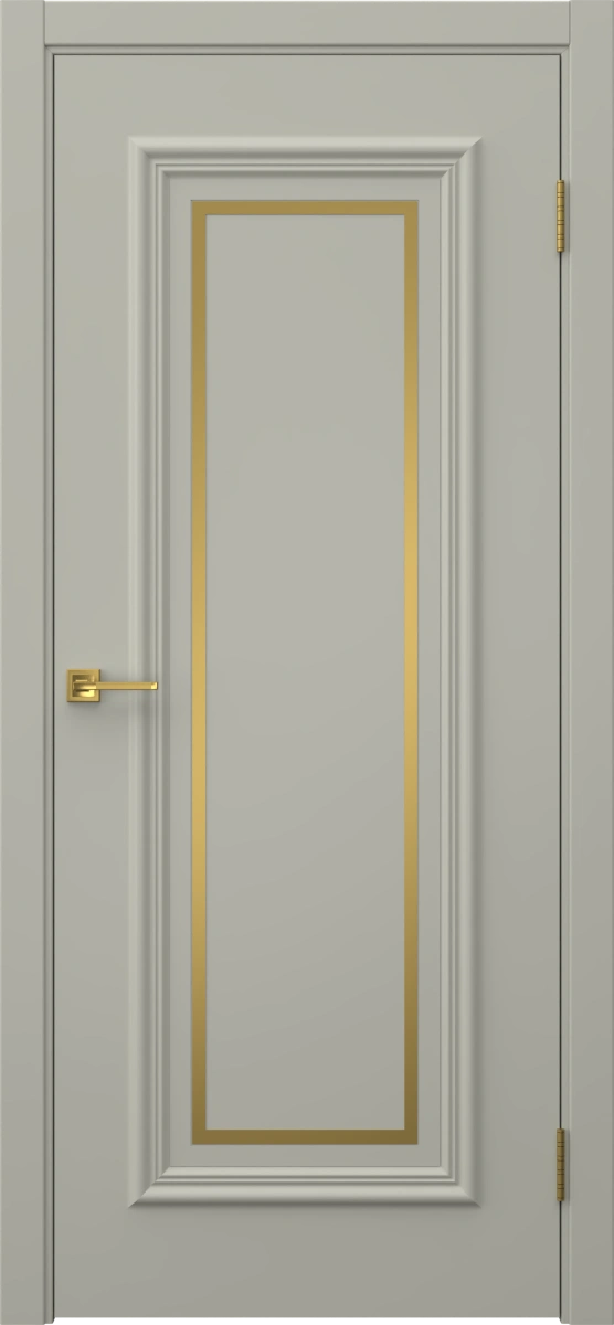 Межкомнатная классическая каркасная дверь, покрытая эмалью цвета RAL 7044 (серый шелк), глухая, с золотым молдингом. Полотно изготовлено из срощенного соснового бруса, сотового наполнителя и МДФ. Толщина: 38 мм. В комплект входит дверная коробка с телескопическим наличником. Изготавливаются под заказ двери нестандартных размеров.