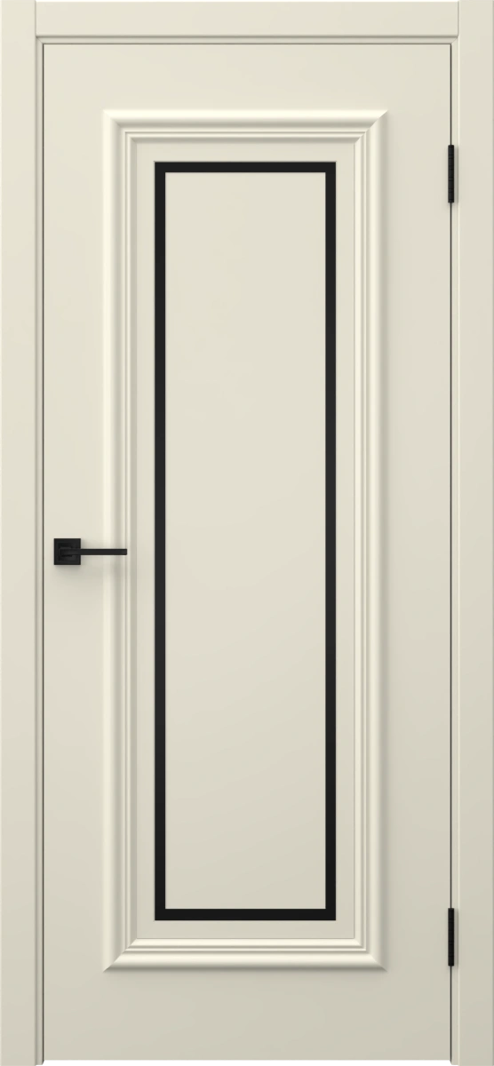 Межкомнатная классическая каркасная дверь, покрытая эмалью в цвете RAL 9001 (кремово-белый), глухая, с черным молдингом. Изготовлена из срощенного бруса сосны, МДФ и сотового наполнителя. Толщина полотна: 38 мм. Дверная коробка с телескопическим наличником входит в комплект. Изготавливаются под заказ двери нестандартных размеров.