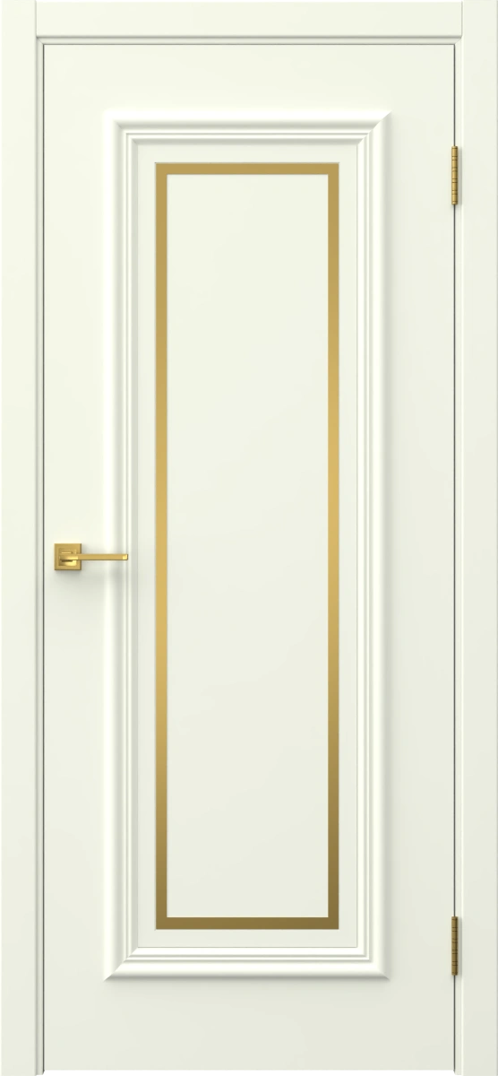 Межкомнатная классическая каркасная дверь, покрытая эмалью белого цвета (RAL 9010), глухая, с золотым молдингом. Изготовлена из срощенного соснового бруса, МДФ и сотового наполнителя. Толщина полотна: 38 мм. Дверная коробка с телескопическим наличником входит в комплект. Под заказ производятся двери нестандартных габаритов.
