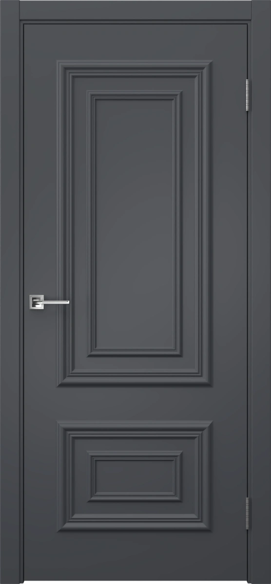Межкомнатная классическая каркасная дверь, покрытая эмалью цвета RAL 7012 (базальтово-серый), глухая. Полотно изготовлено из срощенного соснового бруса, сотового наполнителя и МДФ. Толщина: 38 мм. Комплектация включает в себя дверную коробку с телескопическим наличником. Возможно изготовление дверей нестандартных размеров.