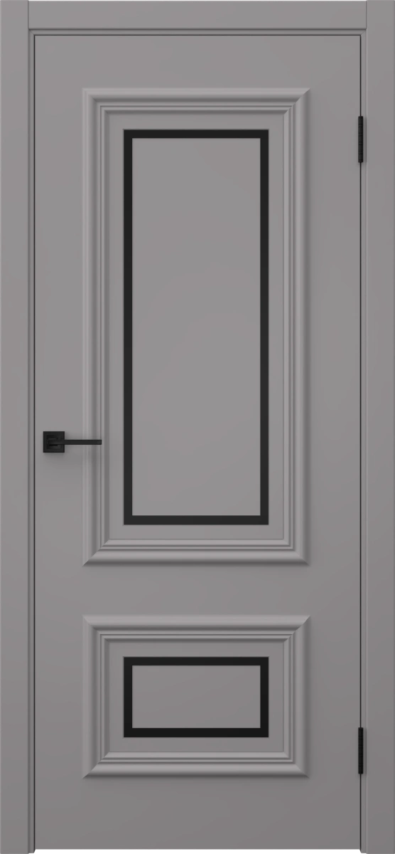 Межкомнатная классическая каркасная дверь, покрытая эмалью в цвете RAL 7036 (платиново-серый), глухая, с черным молдингом. Изготовлена из срощенного бруса сосны, МДФ и сотового наполнителя. Толщина полотна: 38 мм. В комплект входит дверная коробка с телескопическим наличником. Производятся под заказ двери нестандартных размеров.