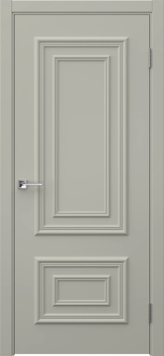 Межкомнатная классическая каркасная дверь, покрытая эмалью цвета RAL 7044 (серый шелк), глухая. Изготовлена из срощенного бруса сосны, МДФ и сотового наполнителя. Толщина полотна: 38 мм. Комплектация включает в себя дверную коробку с телескопическим наличником. Возможно изготовление дверей нестандартных размеров.