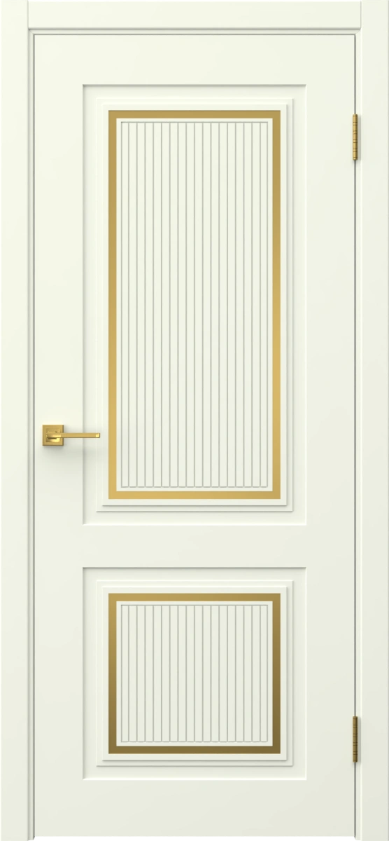 Межкомнатная классическая каркасная дверь, покрытая эмалью белого цвета (RAL 9010), глухая, с золотым молдингом. Изготовлена из срощенного соснового бруса, МДФ и сотового наполнителя. Комплектуется дверной коробкой с телескопическими наличниками. Изготавливаются под заказ двери нестандартных размеров.