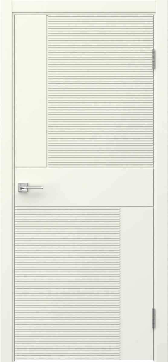 Межкомнатная современная каркасная фрезерованная дверь, покрытая эмалью белого цвета (RAL 9010), глухая. Изготовлена из срощенного соснового бруса, МДФ и сотового наполнителя. Комплектация включает в себя дверную коробку с телескопическими наличниками. Под заказ производятся двери нестандартных габаритов.