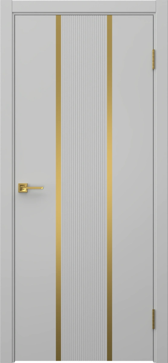 Межкомнатная современная каркасная фрезерованная дверь, покрытая эмалью в цвете RAL 7047 (телегрей 4), глухая, с золотым молдингом. Полотно изготовлено из срощенного соснового бруса, сотового наполнителя и МДФ. В комплект входит дверная коробка с телескопическими наличниками. Производятся под заказ двери нестандартных размеров.