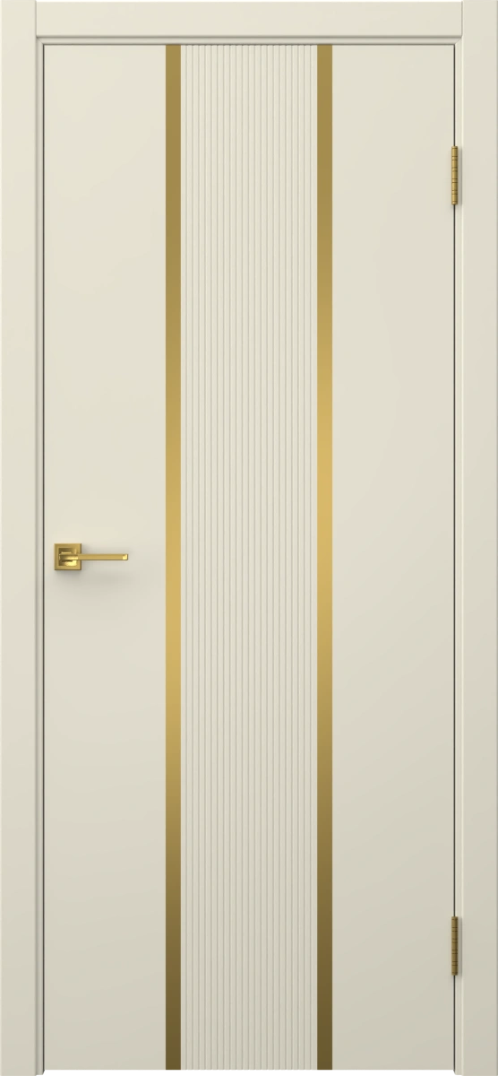 Межкомнатная современная каркасная фрезерованная дверь, покрытая эмалью цвета RAL 9001 (кремово-белый), глухая, с золотым молдингом. Изготовлена из срощенного бруса сосны, МДФ и сотового наполнителя. Дверная коробка с телескопическими наличниками входит в комплект. Изготавливаются под заказ двери нестандартных размеров.