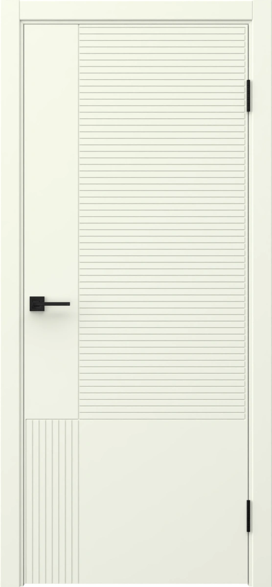 Межкомнатная современная каркасная фрезерованная дверь, покрытая эмалью белого цвета (RAL 9010), глухая. Полотно изготовлено из срощенного соснового бруса, сотового наполнителя и МДФ. Комплектуется дверной коробкой с телескопическими наличниками. Возможно изготовление дверей нестандартных размеров.