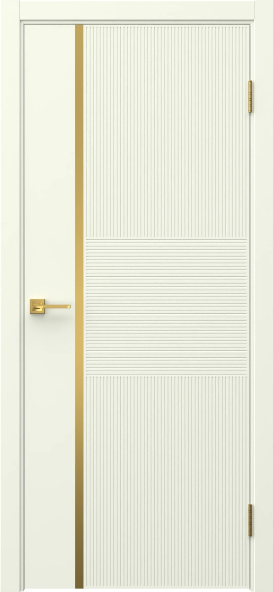 Межкомнатная современная каркасная фрезерованная дверь, покрытая эмалью белого цвета (RAL 9010), глухая, с золотым молдингом. Изготовлена из срощенного соснового бруса, МДФ и сотового наполнителя. Дверная коробка с телескопическими наличниками входит в комплект. Под заказ производятся двери нестандартных габаритов.