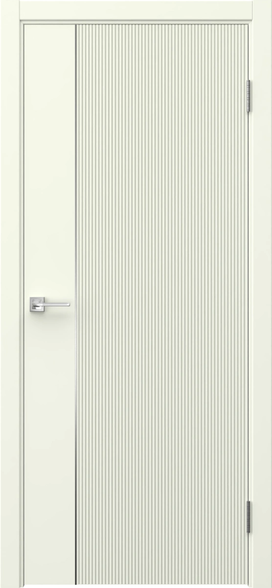 Межкомнатная современная каркасная фрезерованная дверь, покрытая эмалью белого цвета (RAL 9010), глухая, с серебряным молдингом. Изготовлена из срощенного бруса сосны, МДФ и сотового наполнителя. Комплектация включает в себя дверную коробку с телескопическими наличниками. Возможно изготовление дверей нестандартных размеров.