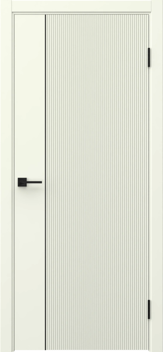 Межкомнатная современная каркасная фрезерованная дверь, покрытая эмалью белого цвета (RAL 9010), глухая, с черным молдингом. Полотно изготовлено из срощенного бруса сосны, МДФ и сотового наполнителя. Комплектуется дверной коробкой с телескопическими наличниками. Под заказ производятся двери нестандартных габаритов.