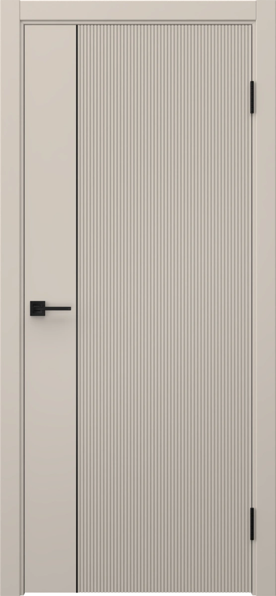 Межкомнатная современная каркасная фрезерованная дверь, покрытая эмалью цвета «мокко», глухая, с черным молдингом. Изготовлена из срощенного бруса сосны, МДФ и сотового наполнителя. Дверная коробка с телескопическими наличниками входит в комплект. Производятся под заказ двери нестандартных размеров.