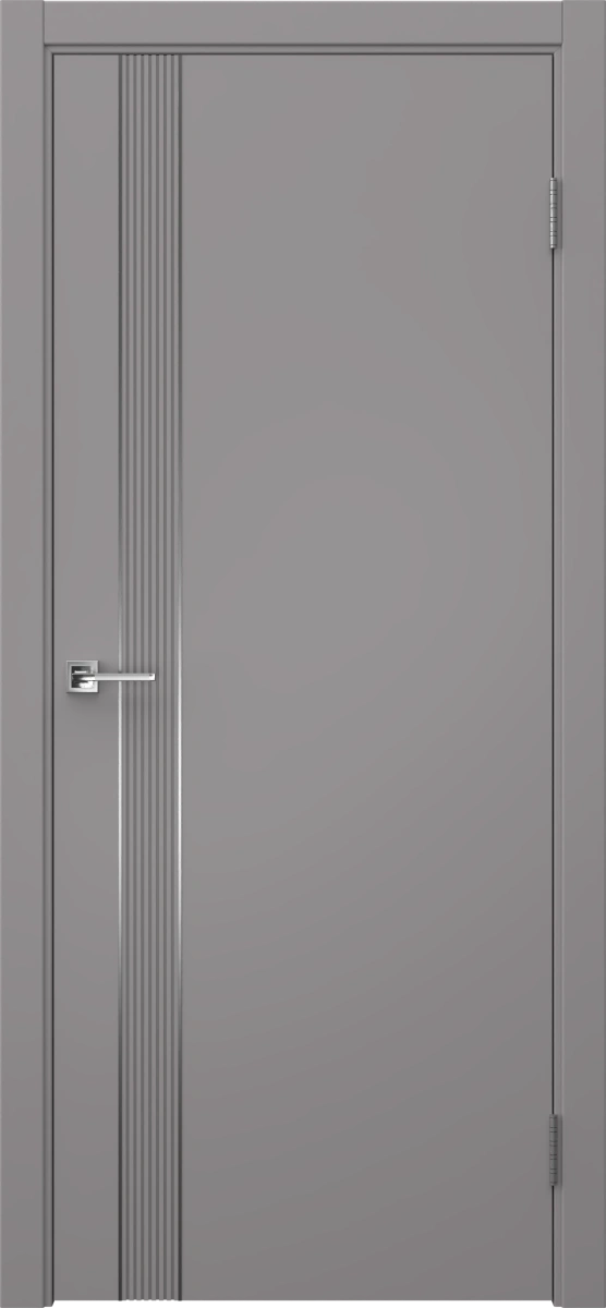 Межкомнатная современная каркасная фрезерованная дверь, покрытая эмалью в цвете RAL 7036 (платиново-серый), глухая, с серебряным молдингом. Полотно изготовлено из срощенного бруса сосны, МДФ и сотового наполнителя. В комплект входит дверная коробка с телескопическими наличниками. Производятся под заказ двери нестандартных размеров.