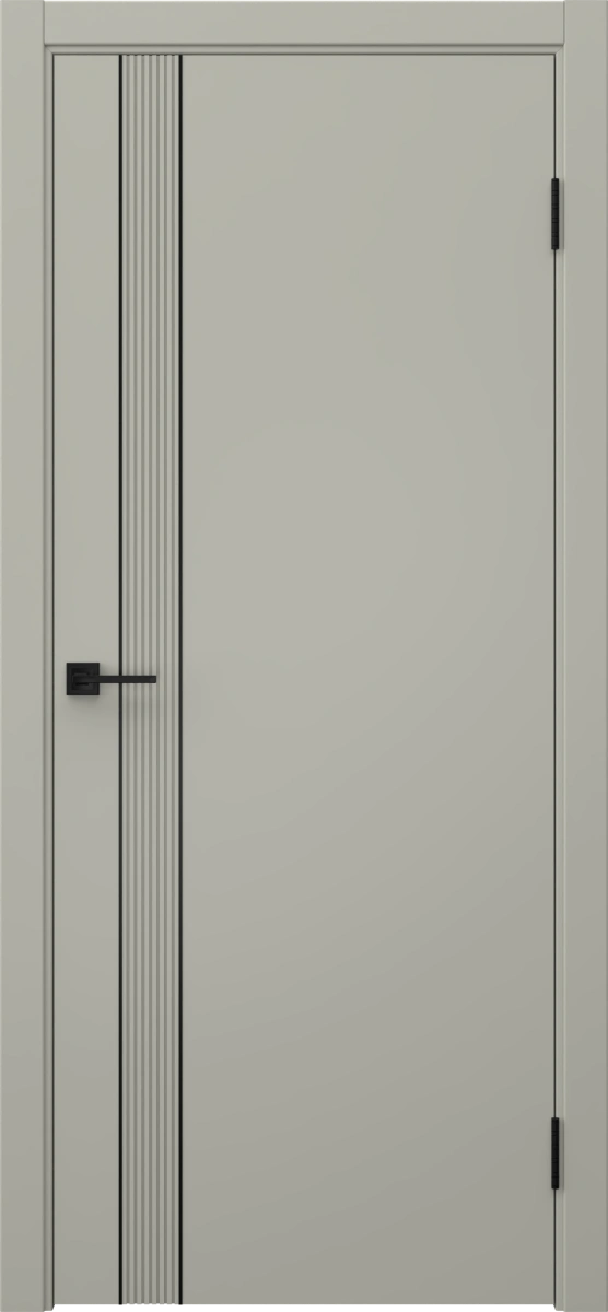 Межкомнатная современная каркасная фрезерованная дверь, покрытая эмалью цвета RAL 7044 (серый шелк), глухая, с черным молдингом. Изготовлена из срощенного соснового бруса, МДФ и сотового наполнителя. В комплект входит дверная коробка с телескопическими наличниками. Под заказ производятся двери нестандартных габаритов.