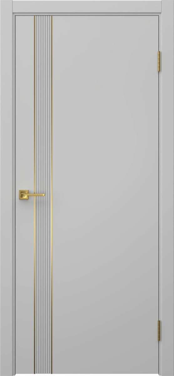 Межкомнатная современная каркасная фрезерованная дверь, покрытая эмалью в цвете RAL 7047 (телегрей 4), глухая, с золотым молдингом. Изготовлена из срощенного бруса сосны, МДФ и сотового наполнителя. Дверная коробка с телескопическими наличниками входит в комплект. Под заказ производятся двери нестандартных габаритов.