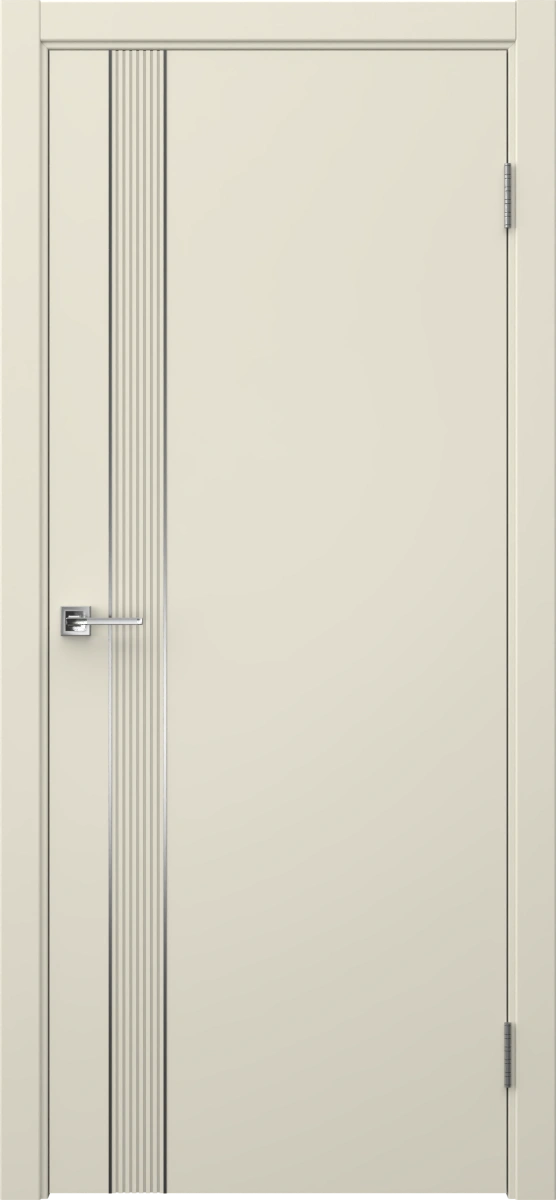 Межкомнатная современная каркасная фрезерованная дверь, покрытая эмалью цвета RAL 9001 (кремово-белый), глухая, с серебряным молдингом. Изготовлена из срощенного соснового бруса, МДФ и сотового наполнителя. Дверная коробка с телескопическими наличниками входит в комплект. Возможно изготовление дверей нестандартных размеров.