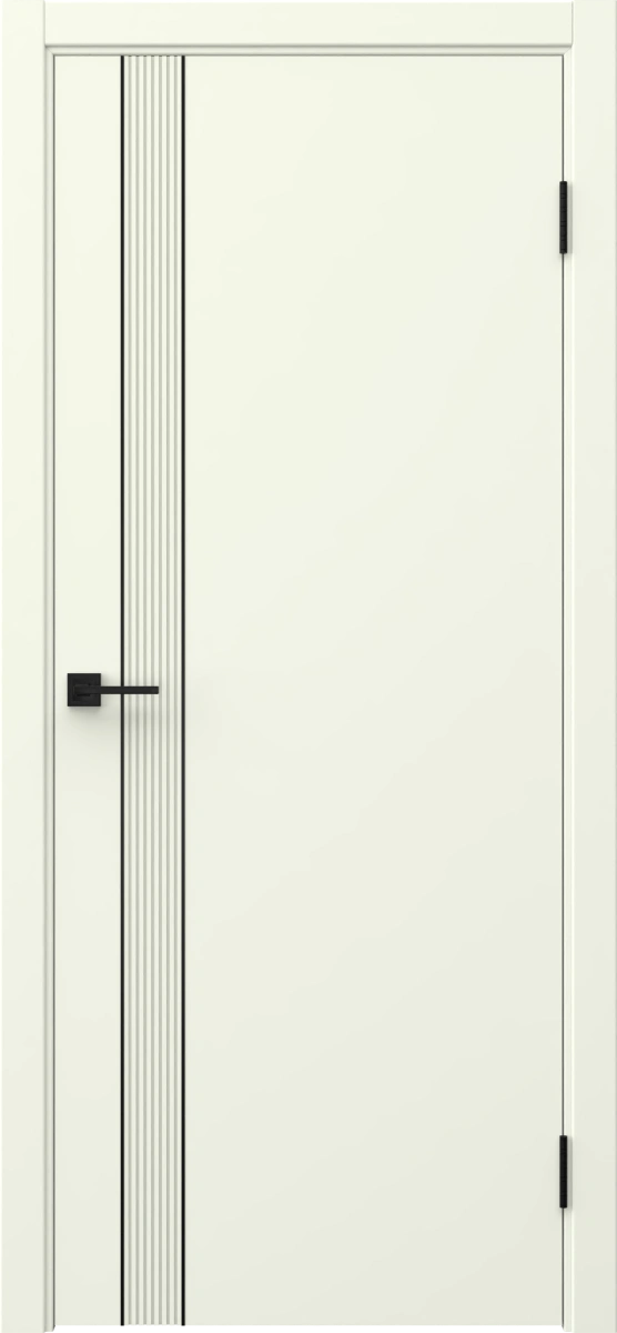 Межкомнатная современная каркасная фрезерованная дверь, покрытая эмалью белого цвета (RAL 9010), глухая, с черным молдингом. Изготовлена из срощенного соснового бруса, МДФ и сотового наполнителя. Комплектуется дверной коробкой с телескопическими наличниками. Под заказ производятся двери нестандартных габаритов.