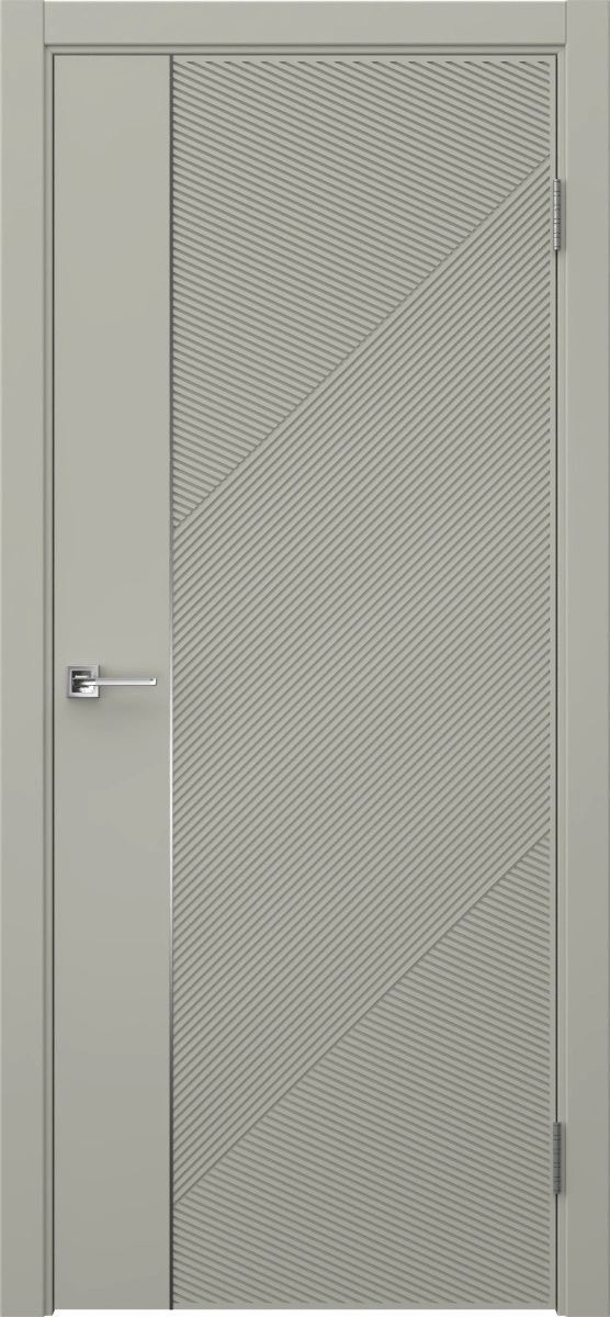 Межкомнатная современная каркасная фрезерованная дверь, покрытая эмалью цвета RAL 7044 (серый шелк), глухая, с серебряным молдингом. Полотно изготовлено из срощенного бруса сосны, МДФ и сотового наполнителя. Комплектация включает в себя дверную коробку с телескопическими наличниками. Изготавливаются под заказ двери нестандартных размеров.