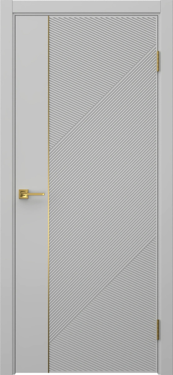 Межкомнатная современная каркасная фрезерованная дверь, покрытая эмалью цвета RAL 7047 (телегрей 4), глухая, с золотым молдингом. Полотно изготовлено из срощенного соснового бруса, сотового наполнителя и МДФ. Комплектация включает в себя дверную коробку с телескопическими наличниками. Под заказ производятся двери нестандартных габаритов.