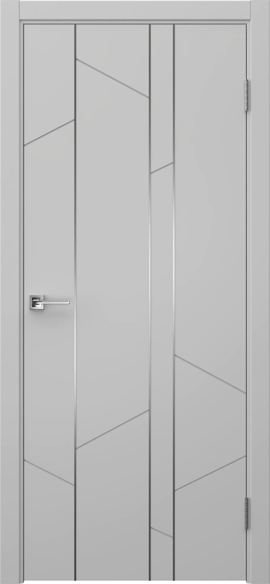 Межкомнатная современная каркасная фрезерованная дверь, покрытая эмалью цвета RAL 7047 (телегрей 4), глухая, с серебряным молдингом. Изготовлена из срощенного бруса сосны, МДФ и сотового наполнителя. В комплект входит дверная коробка с телескопическими наличниками. Изготавливаются под заказ двери нестандартных размеров.